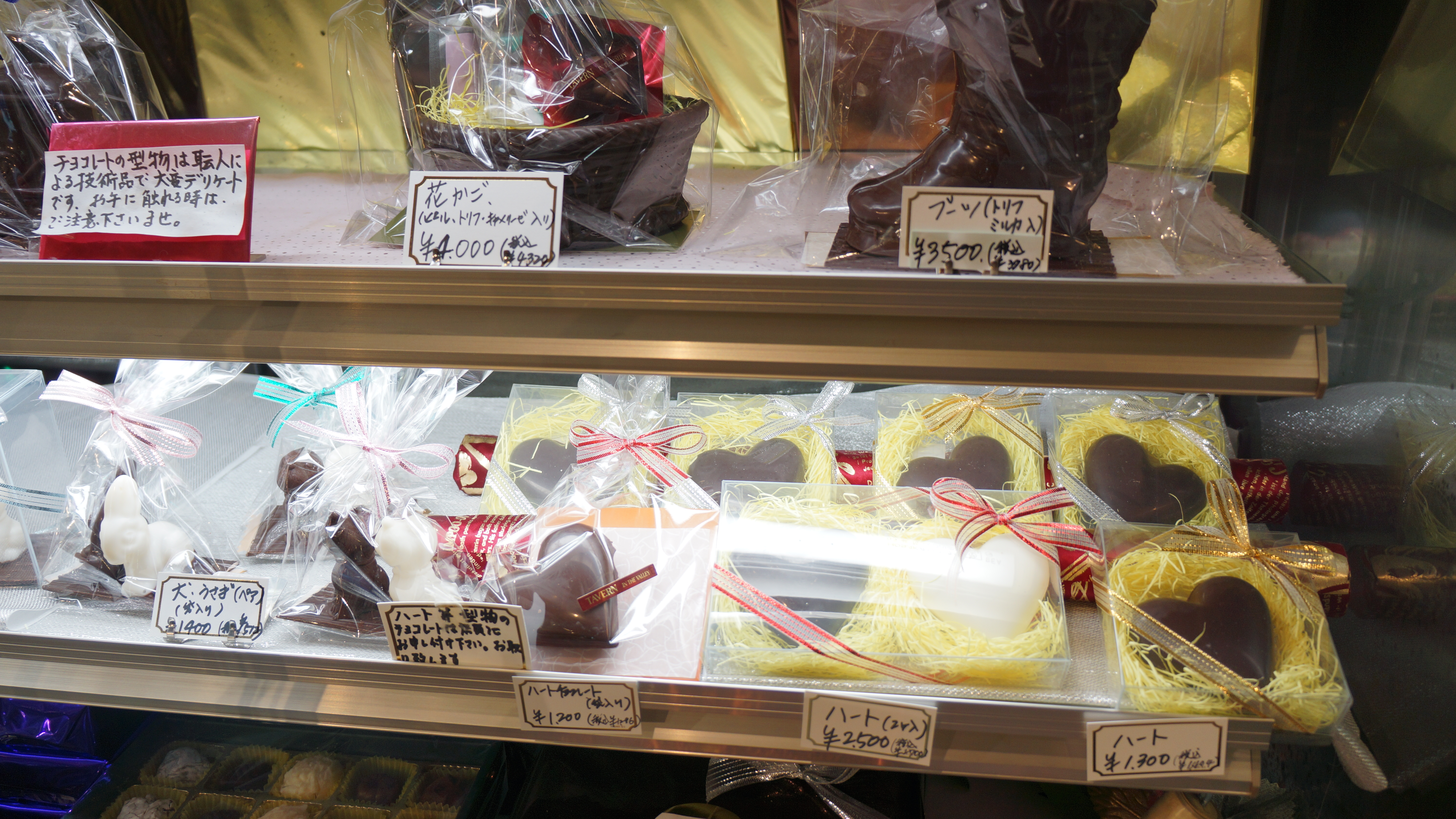 右は型物のチョコレートで,それぞれ犬 ウサギ ハートのチョコレートです。ハートにはプラス¥108でお名前を入れることができます。